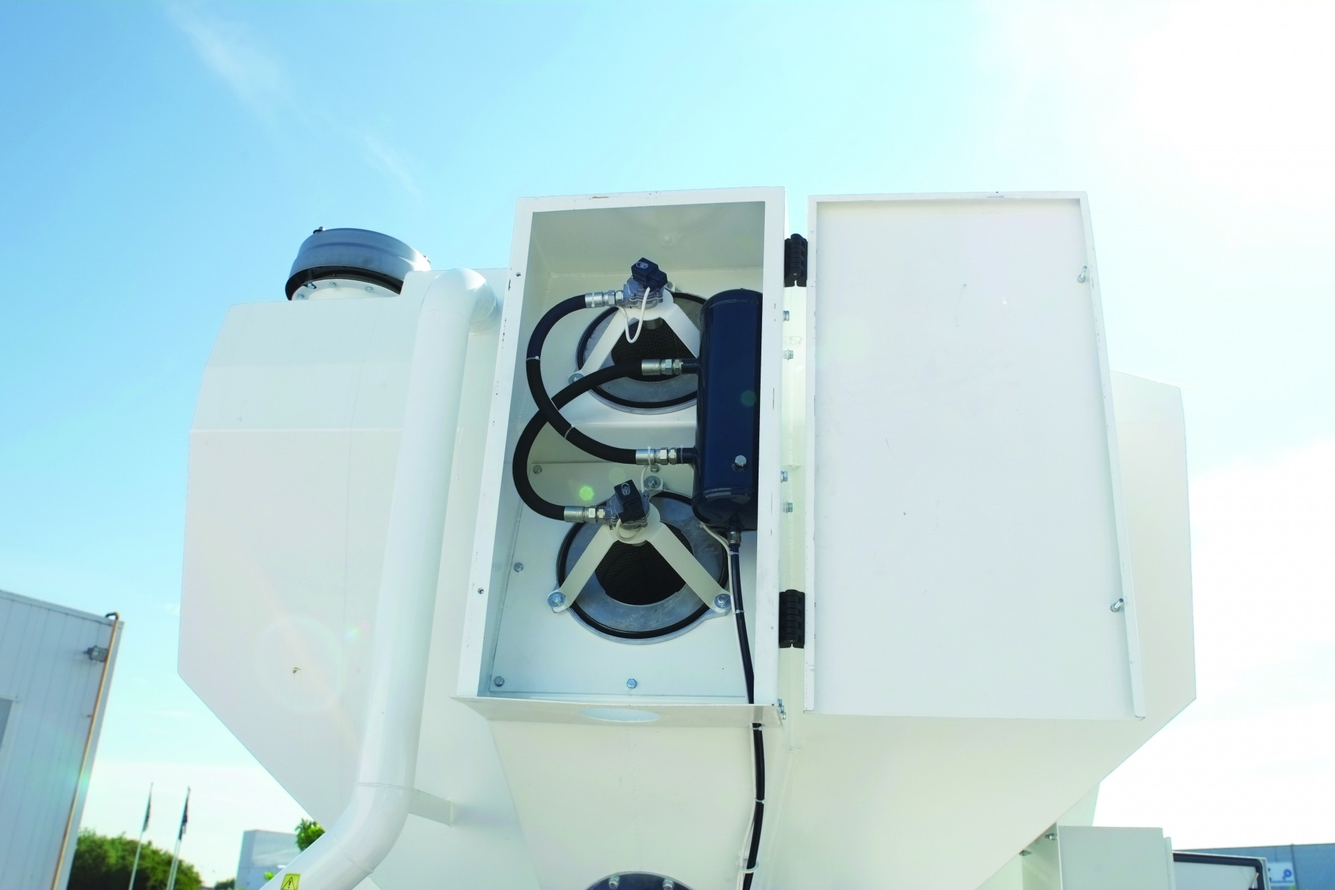 Silos orizzontale per stoccaggio e dosaggio di cemento ad alta capacità.