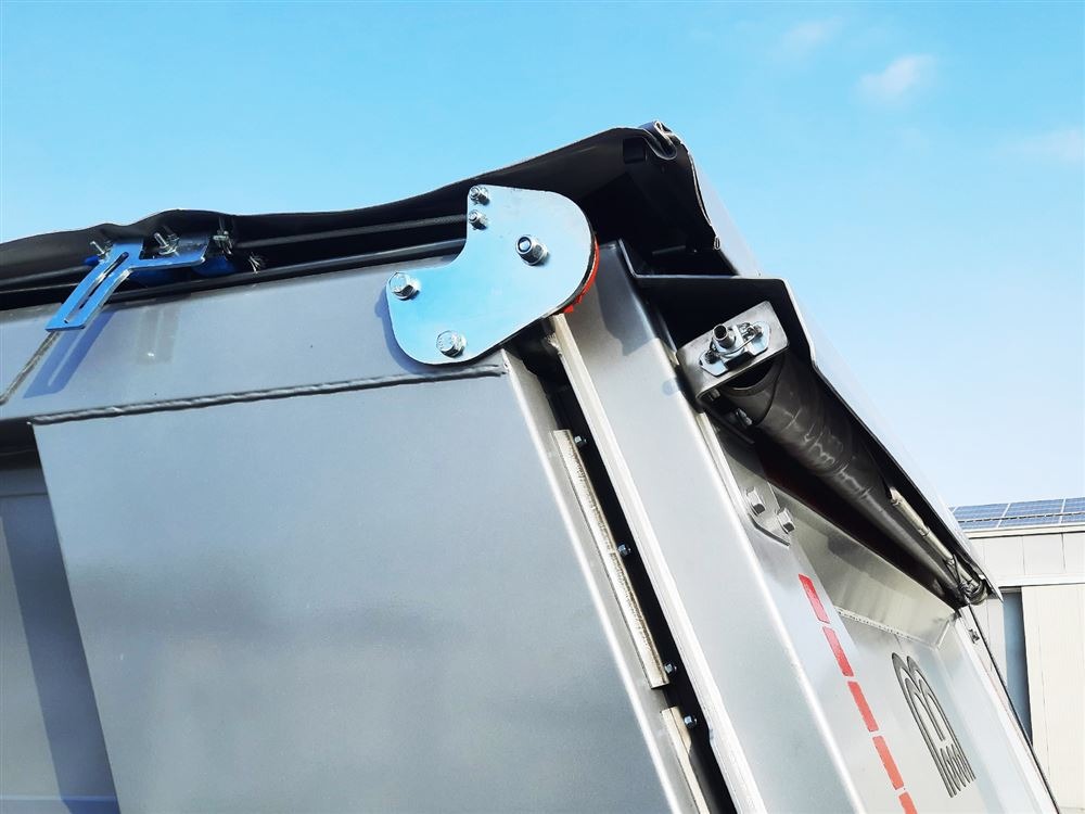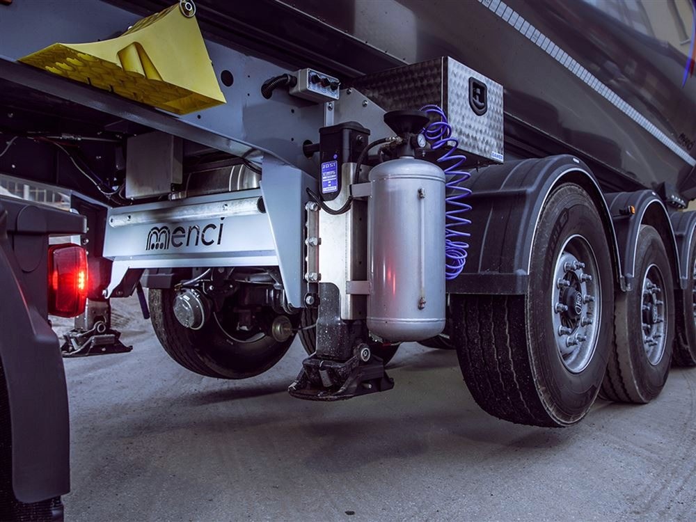 Semirimorchio ribaltabile con cassa tonda coibentata per trasporto materiali a temperatura controllata.