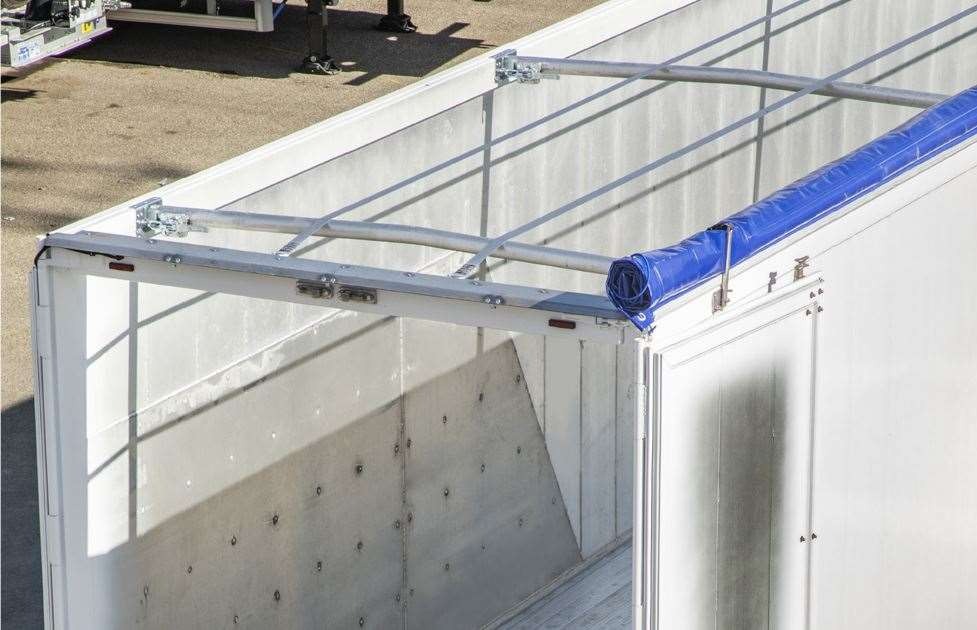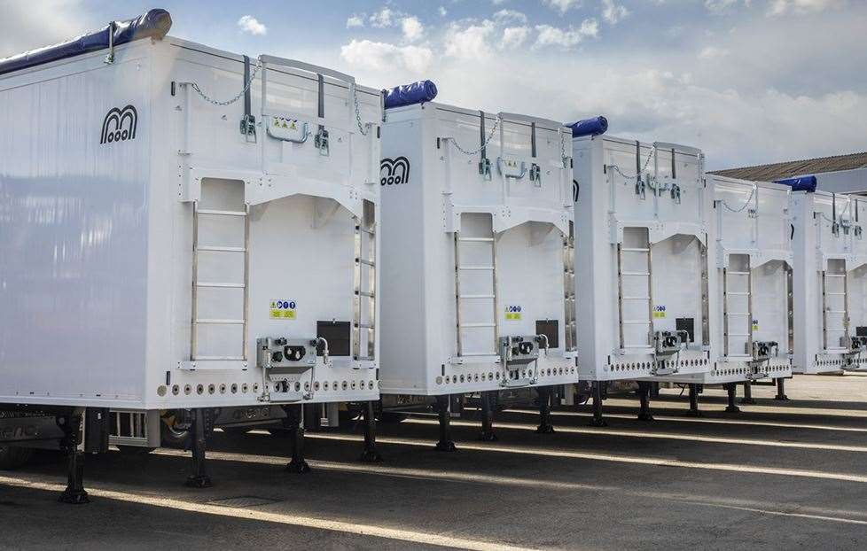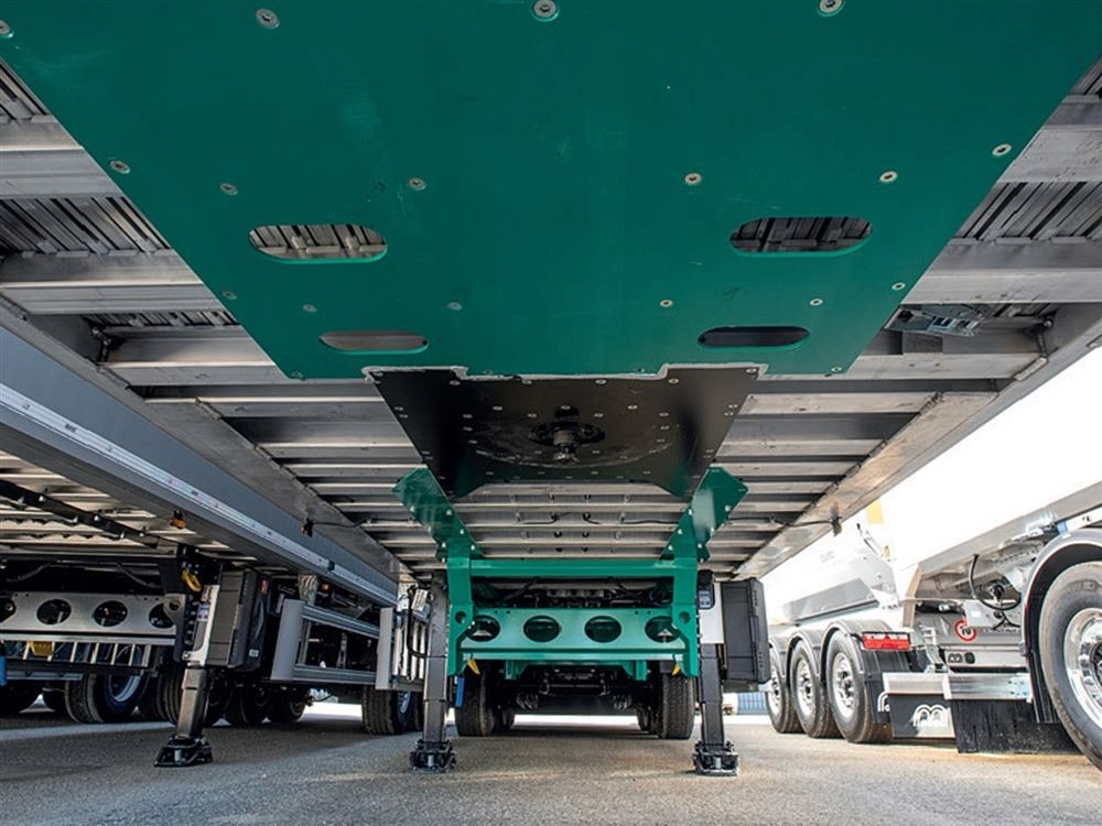 Semirimorchio con sistema piano mobile progettato per il trasporto di cereali e prodotti agricoli.