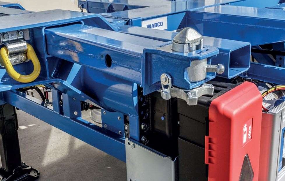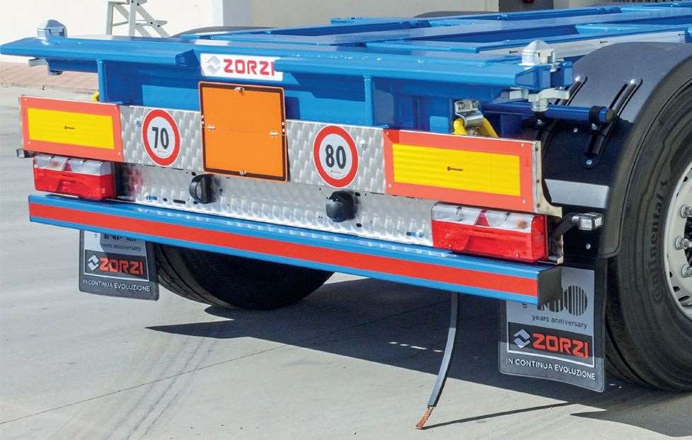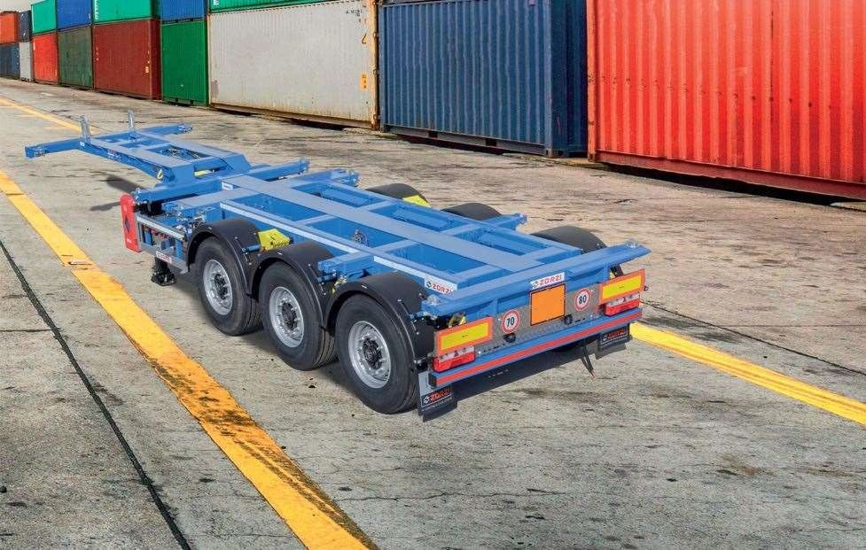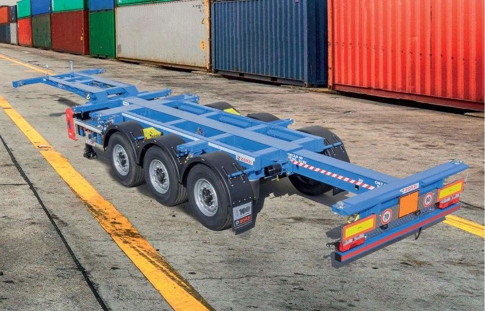 Semirimorchio portacontainer allungabile per diverse misure di container.